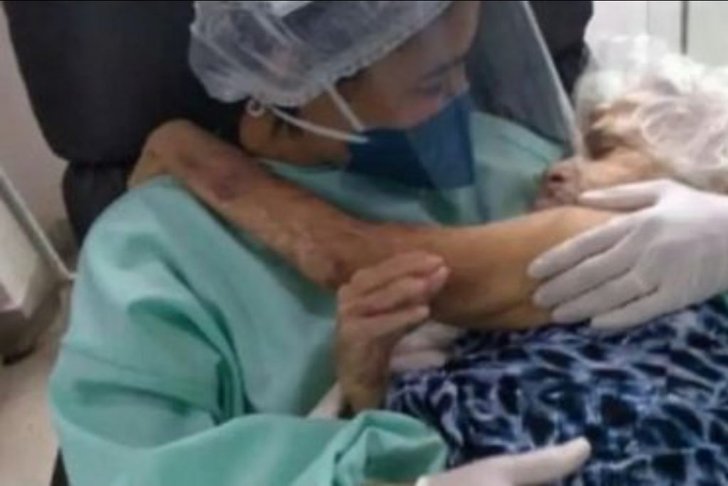 Hace poco, se ha publicado una foto de esta enfermedad cargando a una abuelita en brazos; consolándola. Buscando ayudarla para que no este sufriendo.